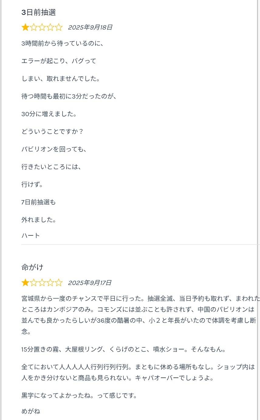 みんな苦しんでるのに障がい者たちが悠々自適にチケットの割引を受けた上にノーウェイトで入ってパビリオンに入場していく