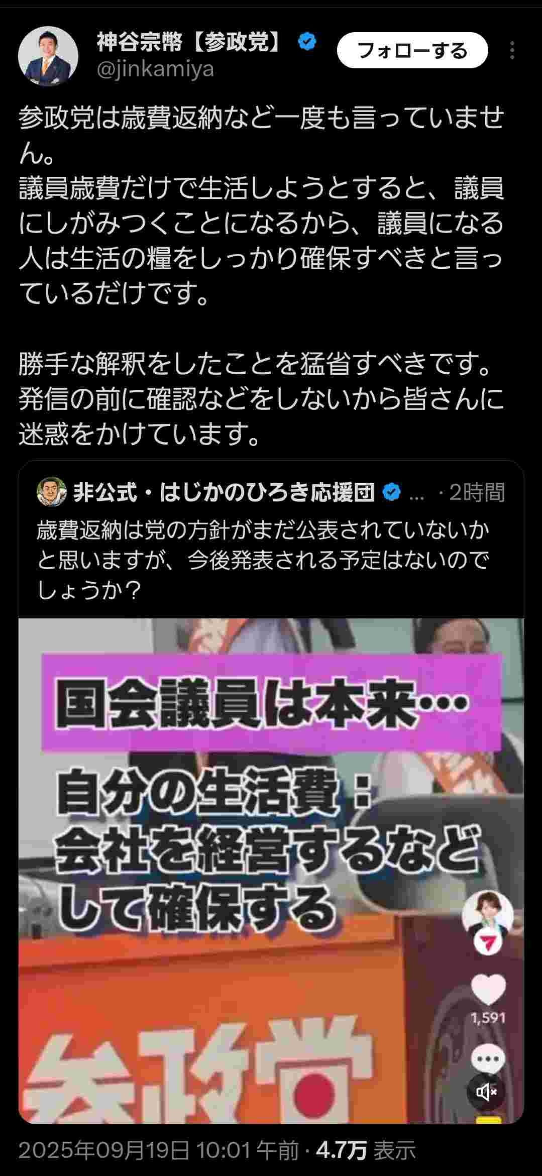 まあ、ならば勝手に歳費かえすとか党の方針と違う事いうやつは除名しろって話なんですけどね
