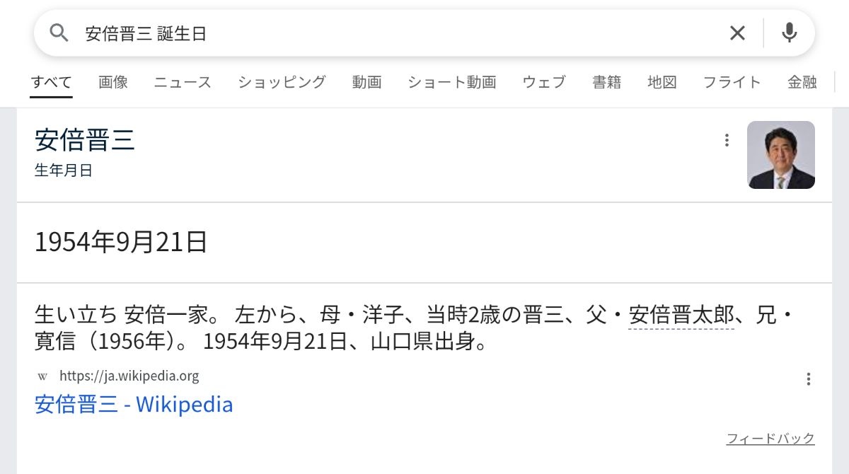 安倍晋三 誕生日9月21日