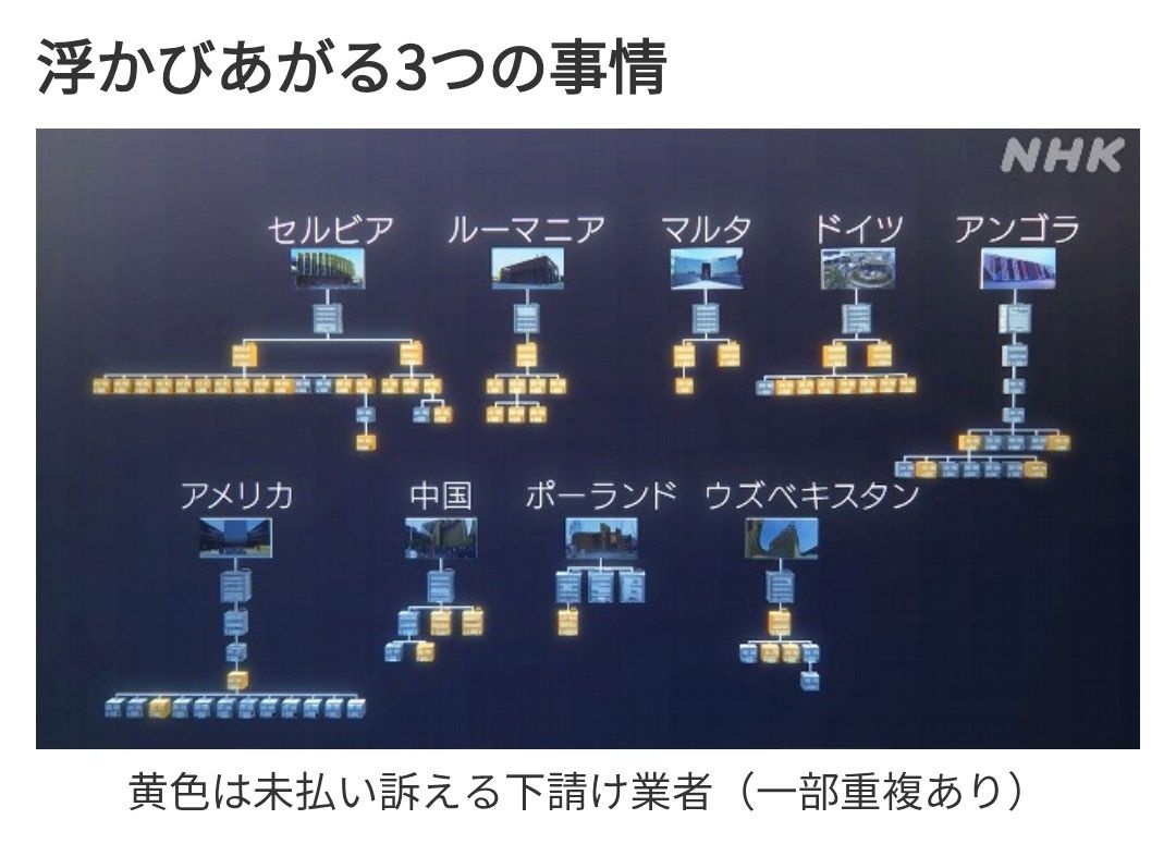 そもそも他国が発注元の建物だから泣き寝入り多くなるんじゃね?って最初から言われてたのに受注したのがアホ