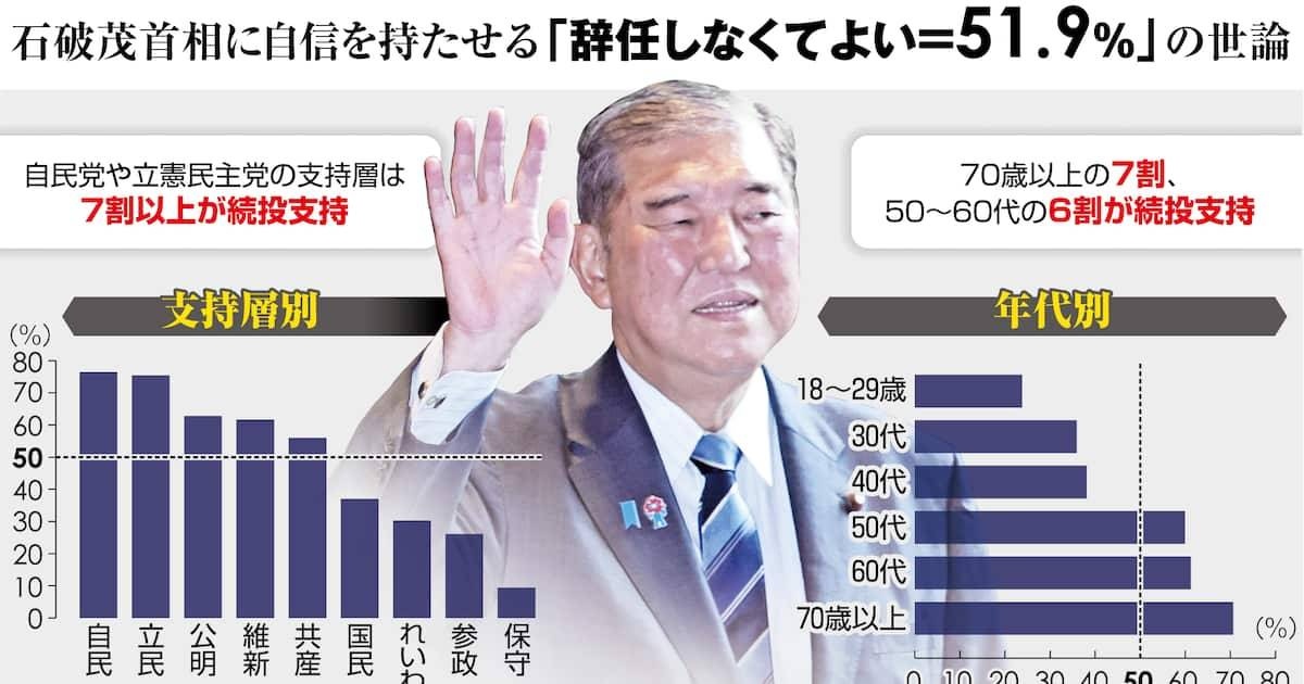 石破首相が信じる「国民世論」既成政党支持層と50代以上が押し上げた「辞任不要」過半数
