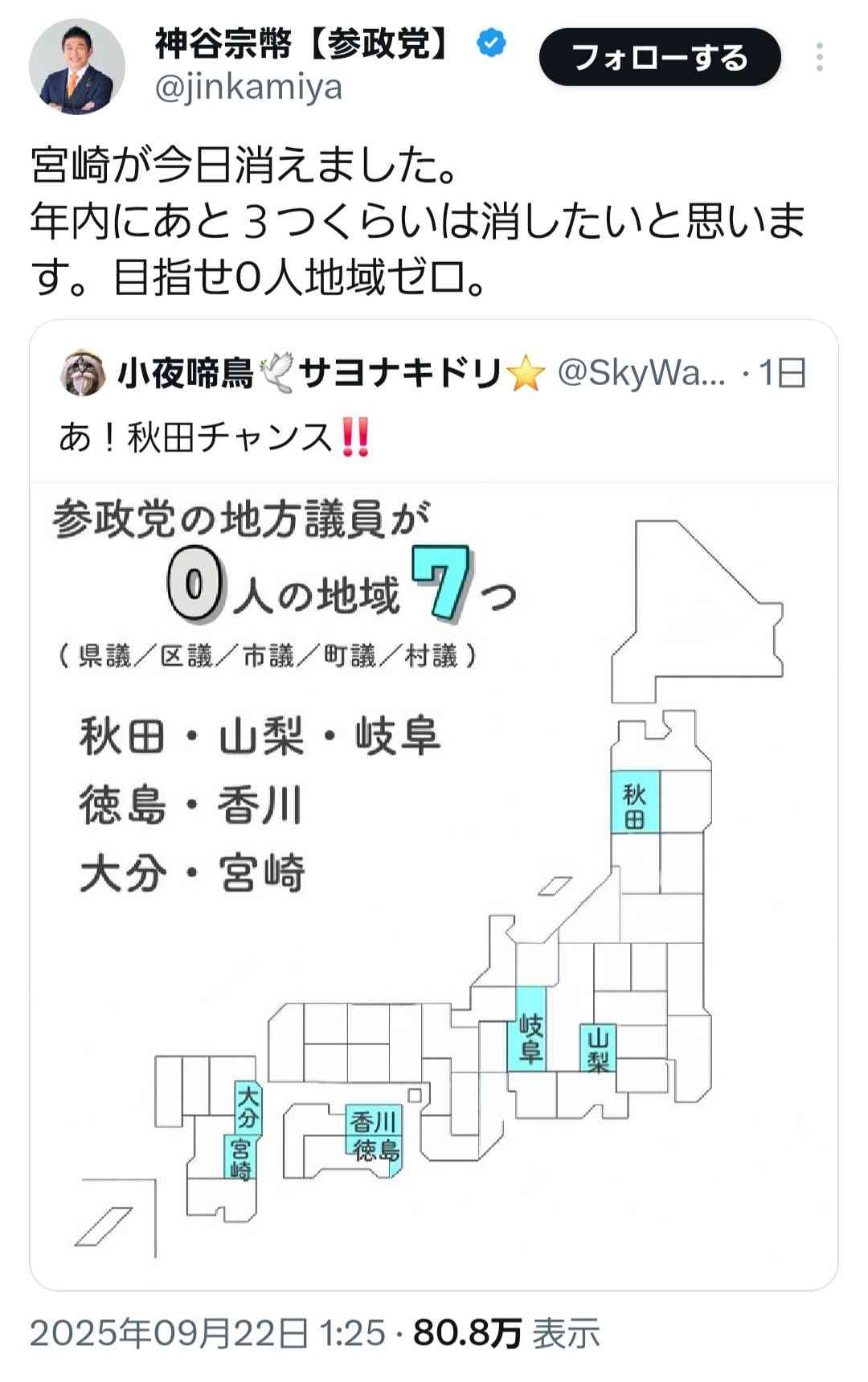 岐阜も九州もネトウヨ多そうだから時間の問題ある意味自民が防波堤になってるとも言える
