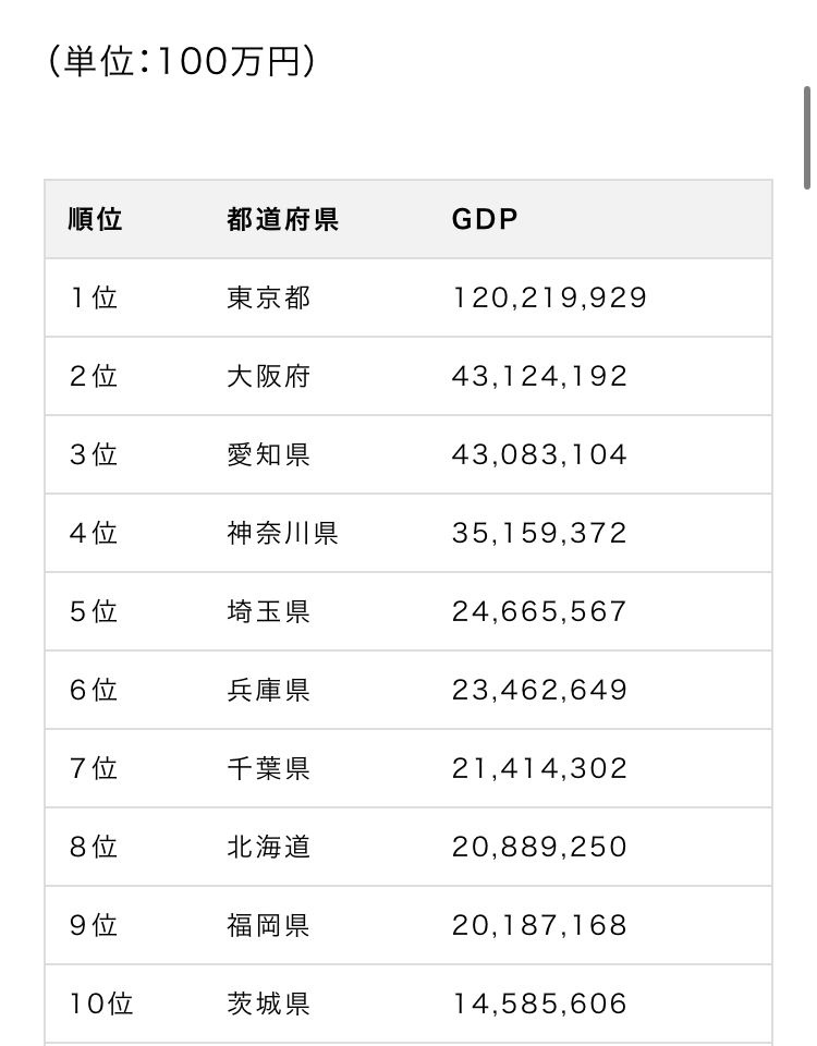 東京都は中央集権の強力な国の首都だから別格とすると愛知県が事実上の1位になりそうなのか