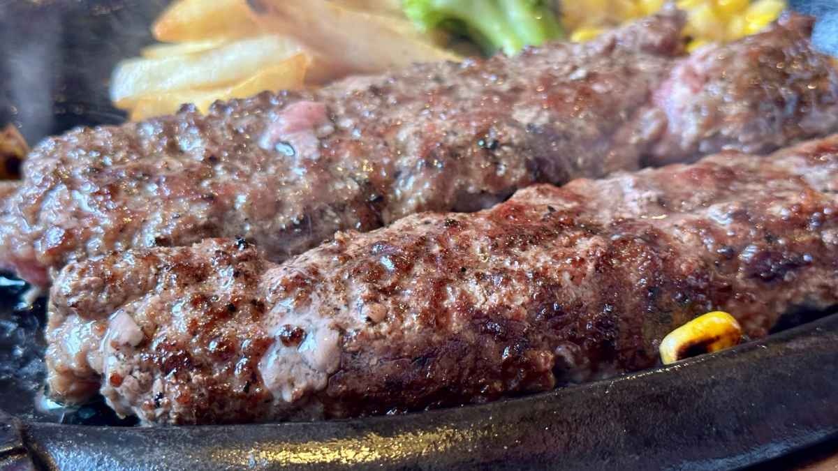 この店のハンバーグはハンバーグが乗せられた鉄板の上で、客が自らハンバーグを押し付けて焼いて仕上げる提供方法で、そのスタイルはこの店のオリジナルではなく、オリジナルは神奈川県横浜市にあるレストランで半世紀以上も前から提供されているものだ。