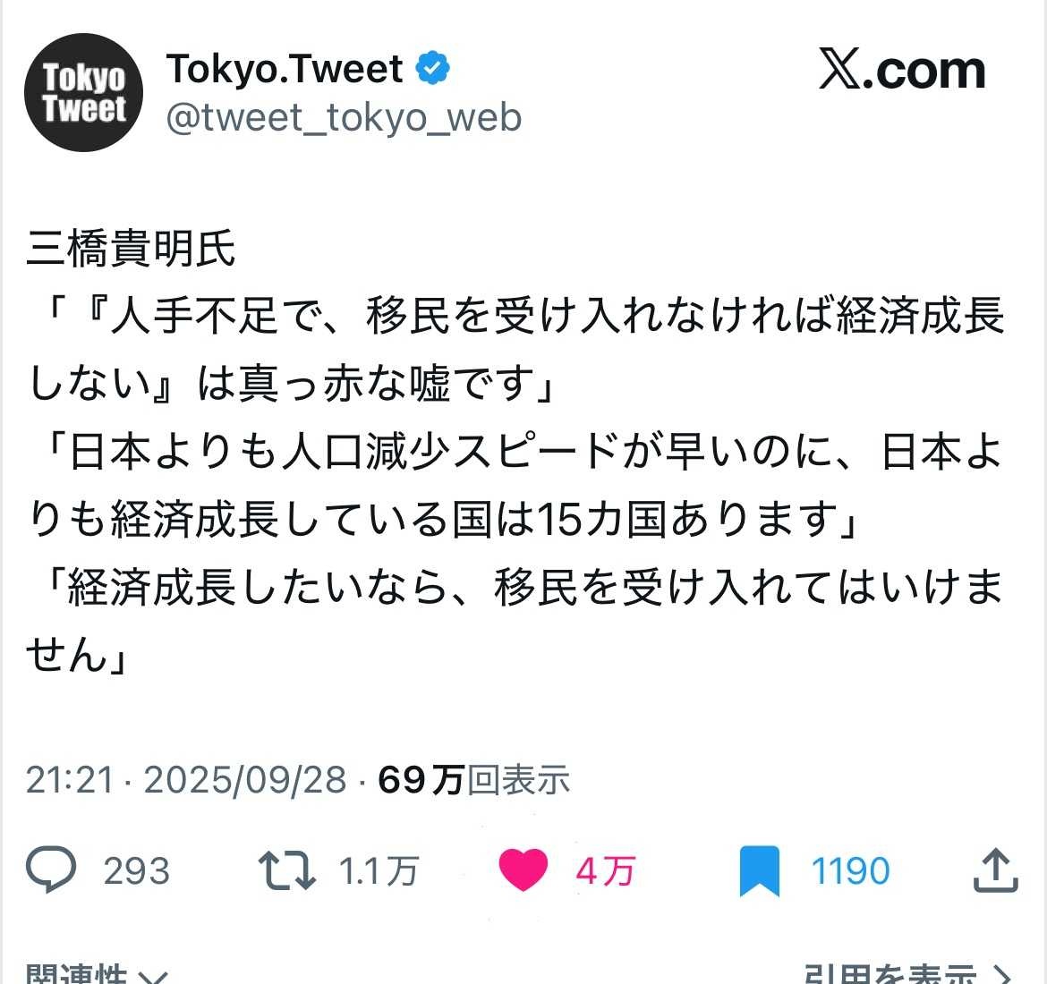 大企業でも40代50代が大量に解雇されてるしAIのおかげで移民なしでも人手不足にはならないだろ