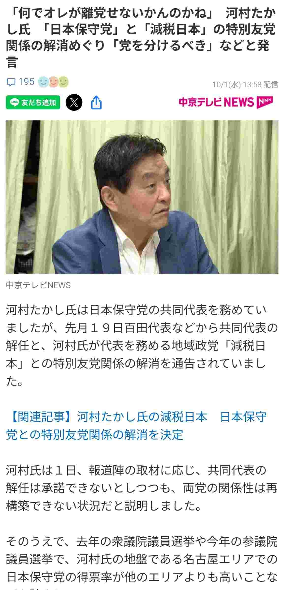 減税日本は、日本保守党との特別友党関係の解消を決定