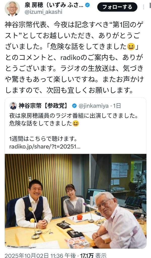 神谷が参政党に泉をオファーしてた泉もかなり動揺してた