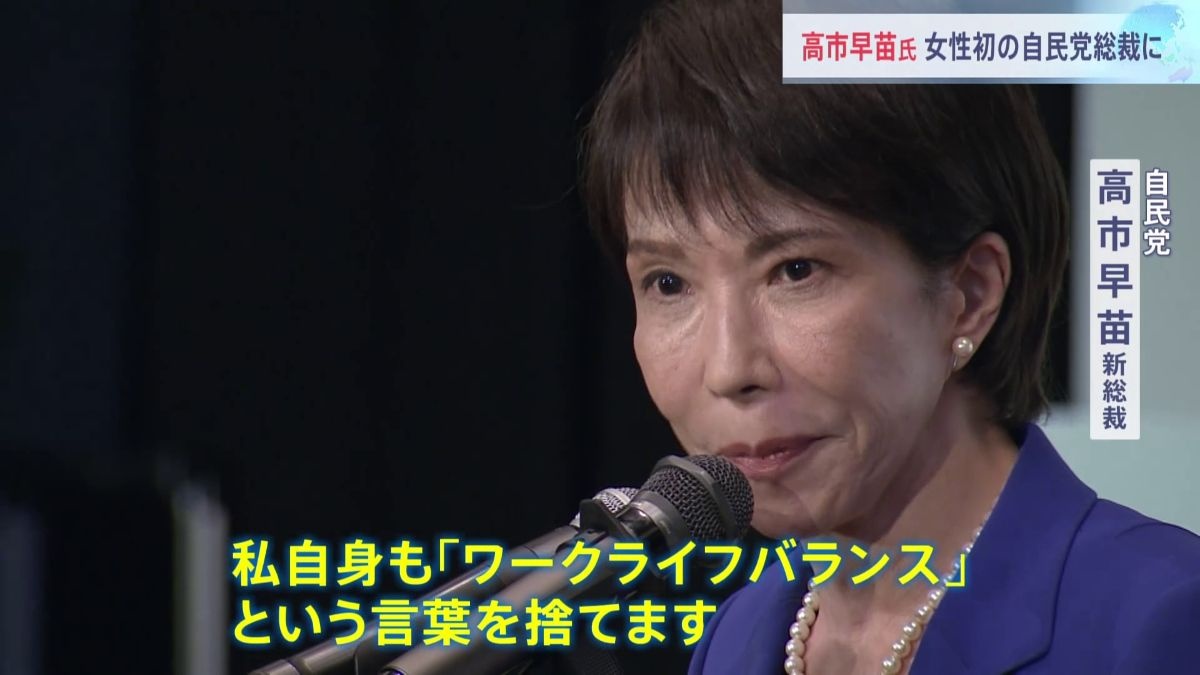 新総裁 高市早苗氏が選出 女性初 「ワークライフバランスという言葉を捨てます」