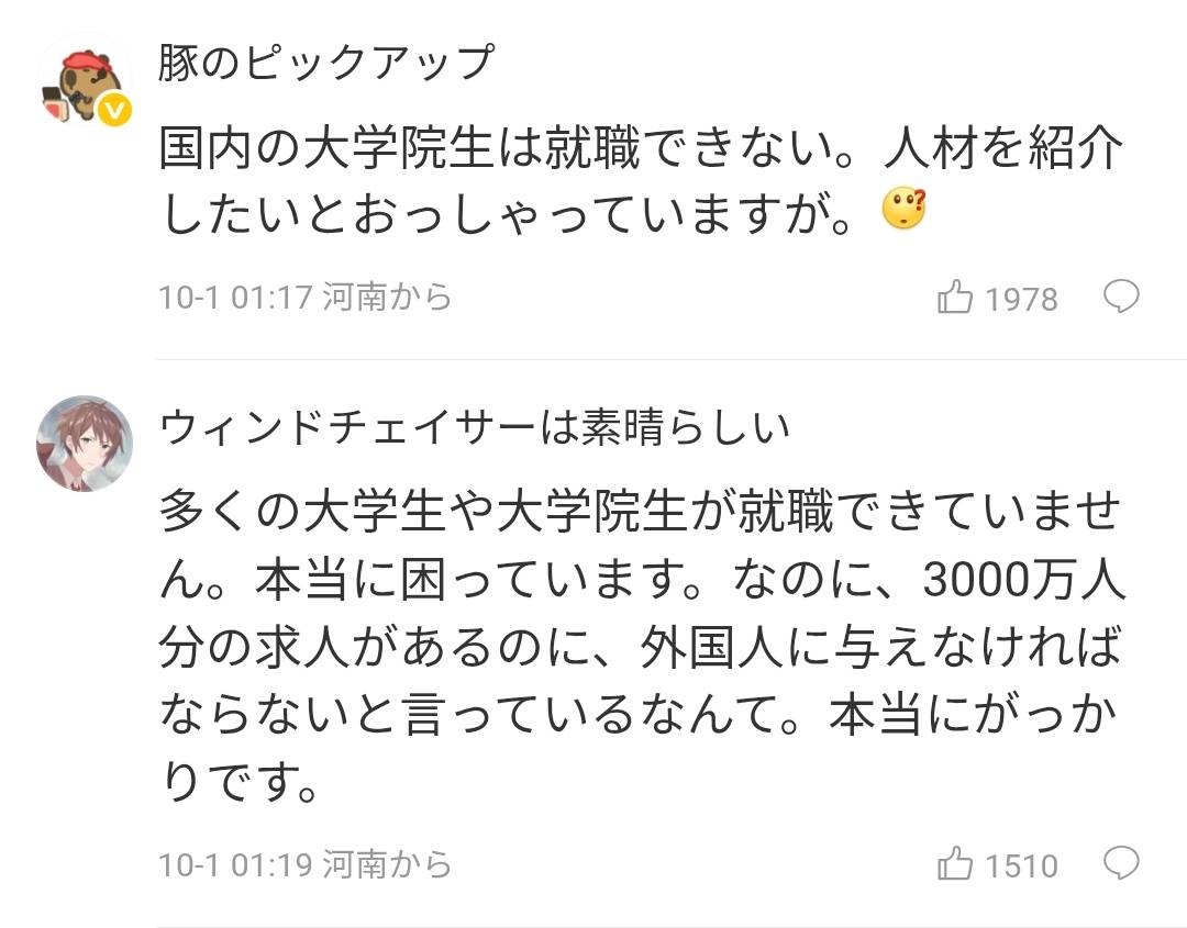 というか中国は日本と違って人口が強みなくらい人余ってるんだから外人受け入れる必要ないだろ