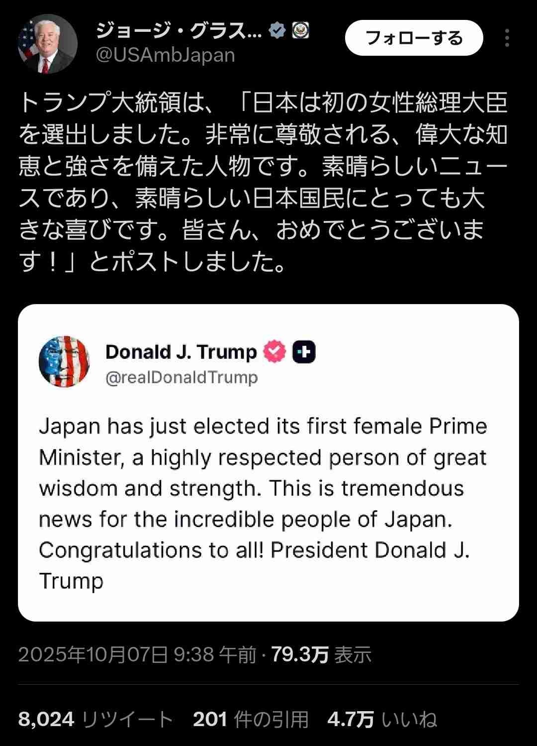 アメリカさんは高市を総理にしろって事か