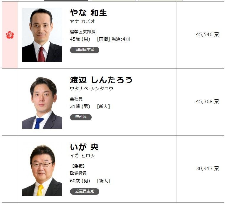 ただ、その小選挙区当選ももう4人まで減ったけどな