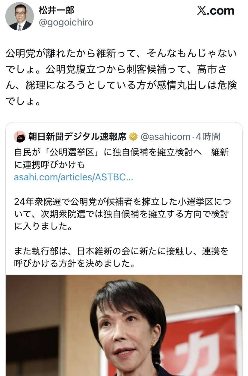 まだ公明と交渉しないといけないのに「一方的に解消された😡」とか砂掛けてるのは悪手だわな