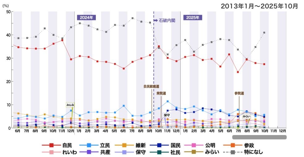 立憲伸びたのは単純に高市に変わって自民から離れた層じゃね?
