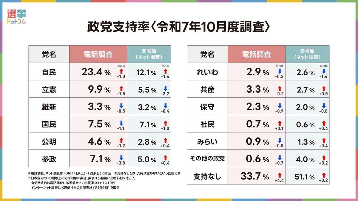 選挙ドットコム×JX通信社 最新全国意識調査(10/11-12)📈