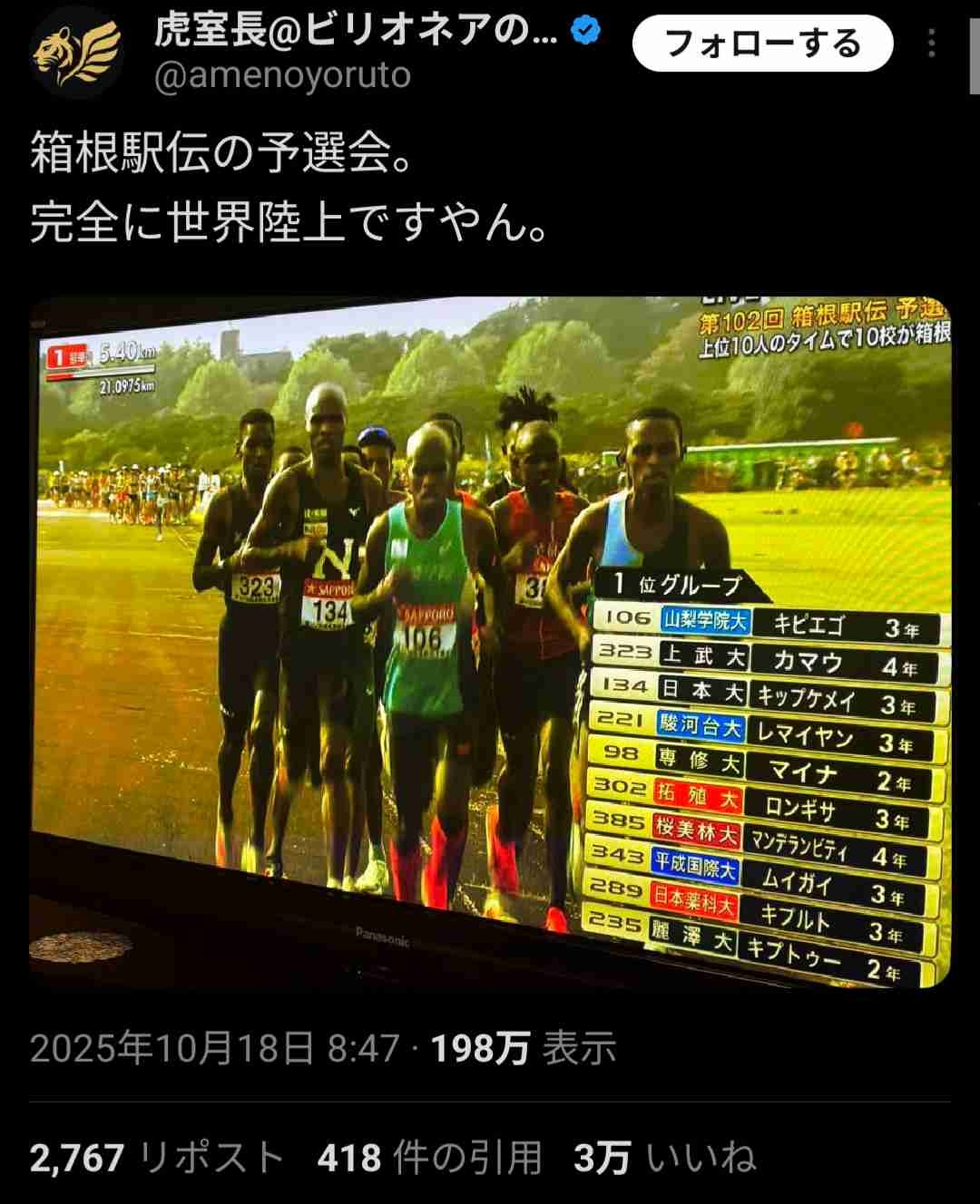 本番でも出てくるけど青学とか強豪校は意外と日本人だけだったりする