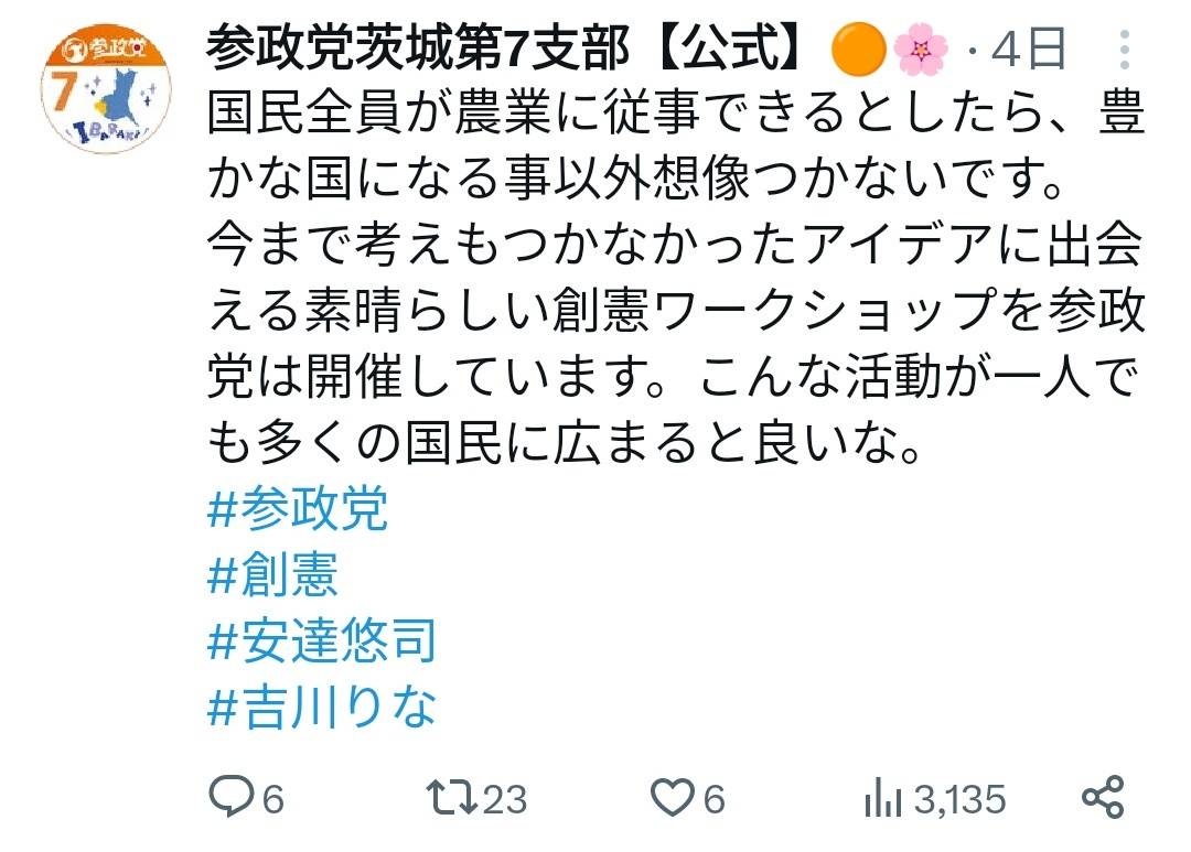 参政党さんのスタッフたち全員が農家やるってさ!