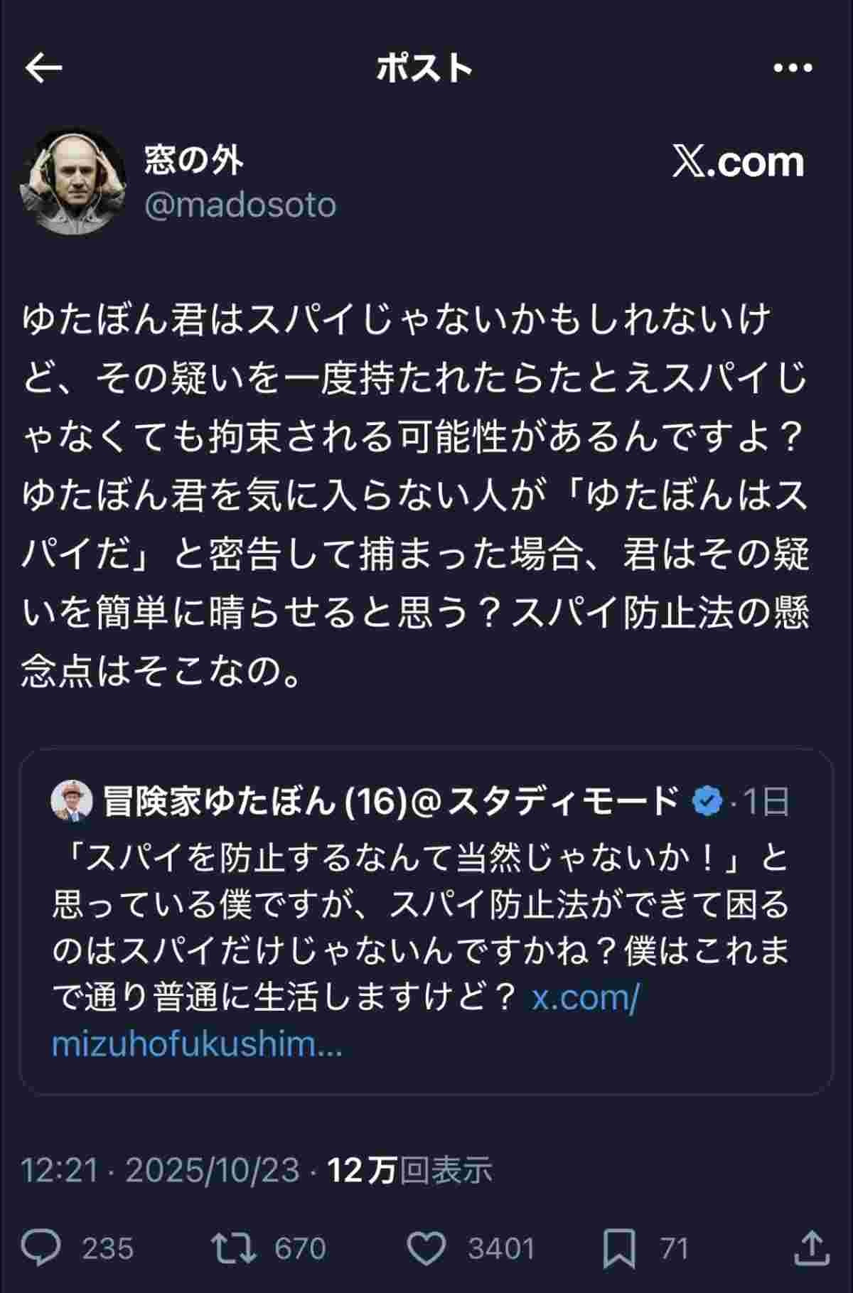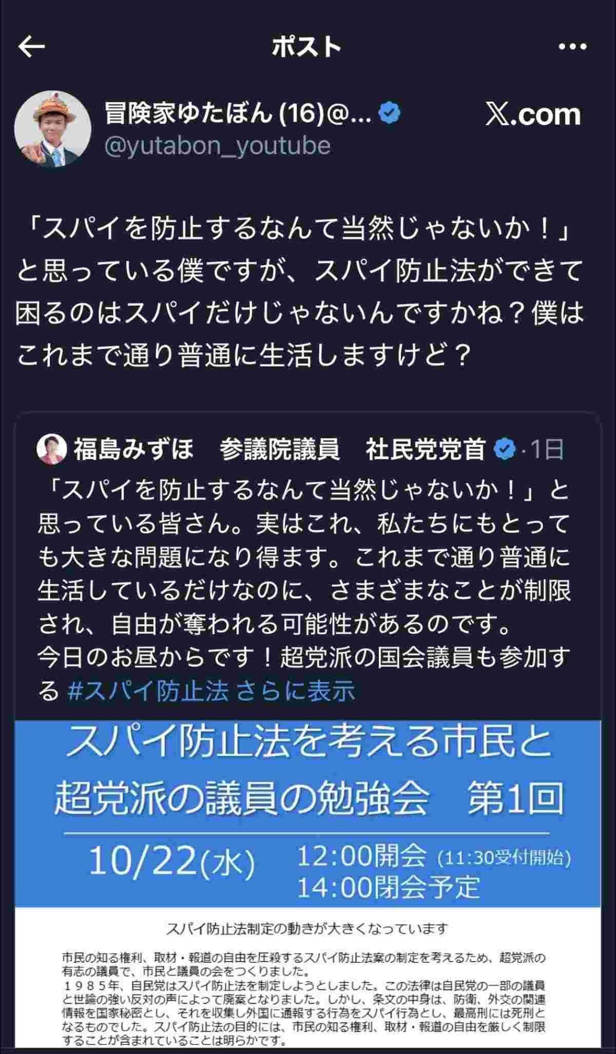 ゆたぼん「スパイ防止法ができて困るのはスパイだけ」→識者に完全論破される