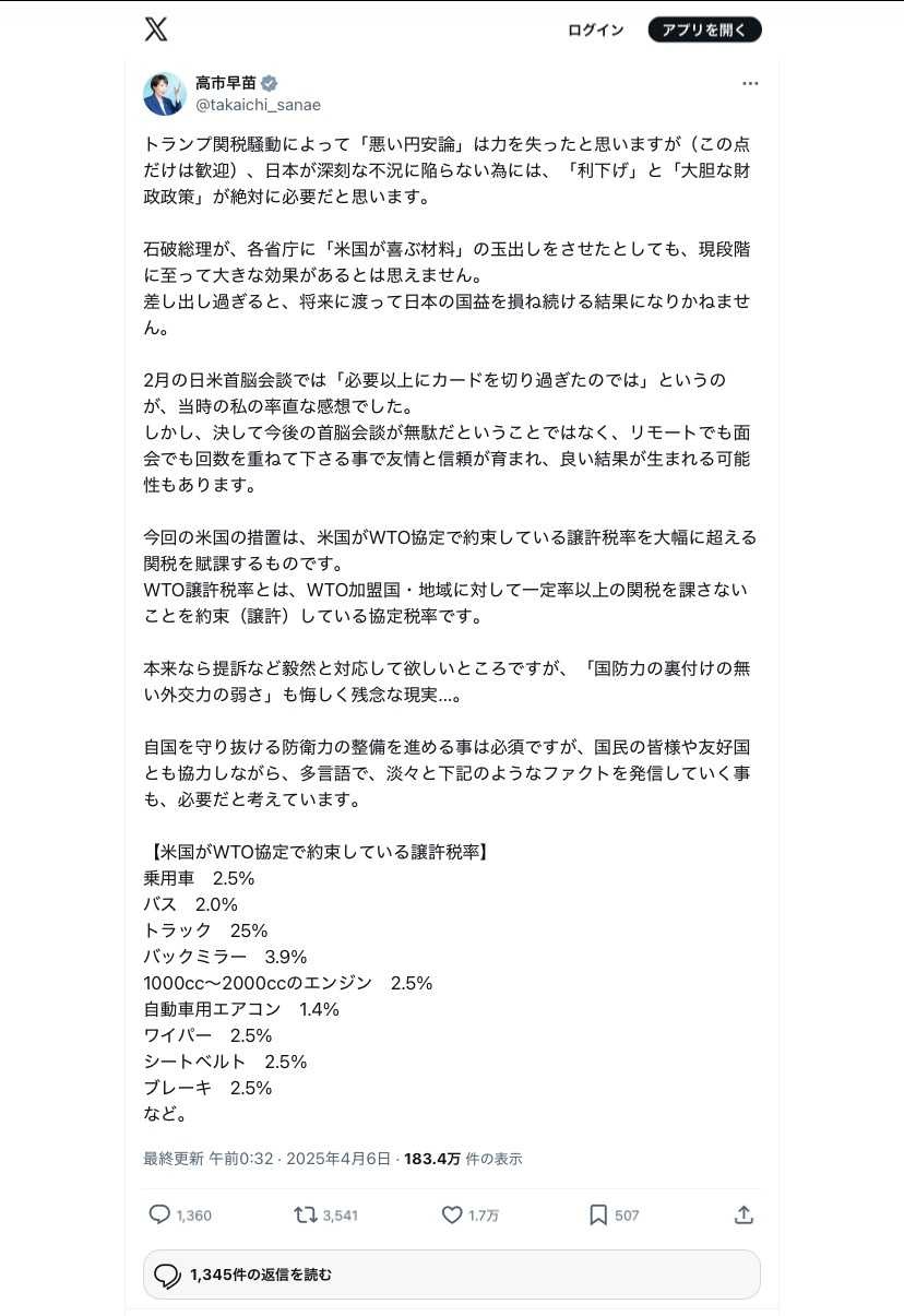 逆に安倍からの高市支持なのに利下げに反対する奴いるのかよ