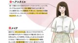 髪形は「『清潔感』や『美しさ』、『品の良さ』を意識するのがポイント」として、ツヤを保ち、パサつきや傷みのケアも奨励する。