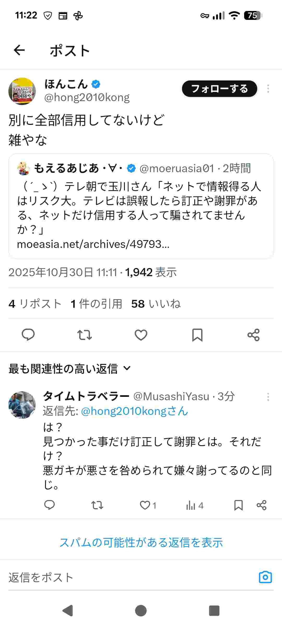 あれ、前はネットしか信用できないとかツイートしてなかったっけ?