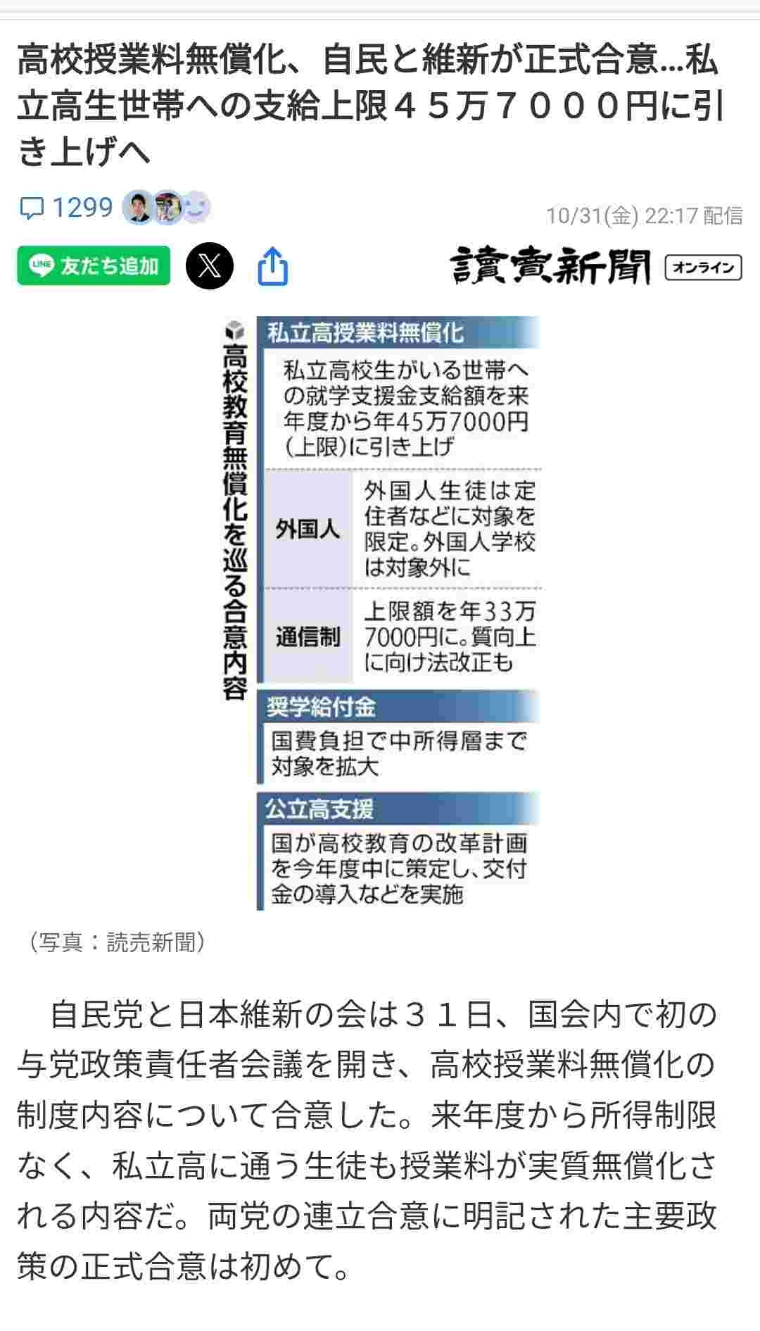 現状では外国人学校の一条校は高校無償化の範囲に入ってるが、除外するんだろうか