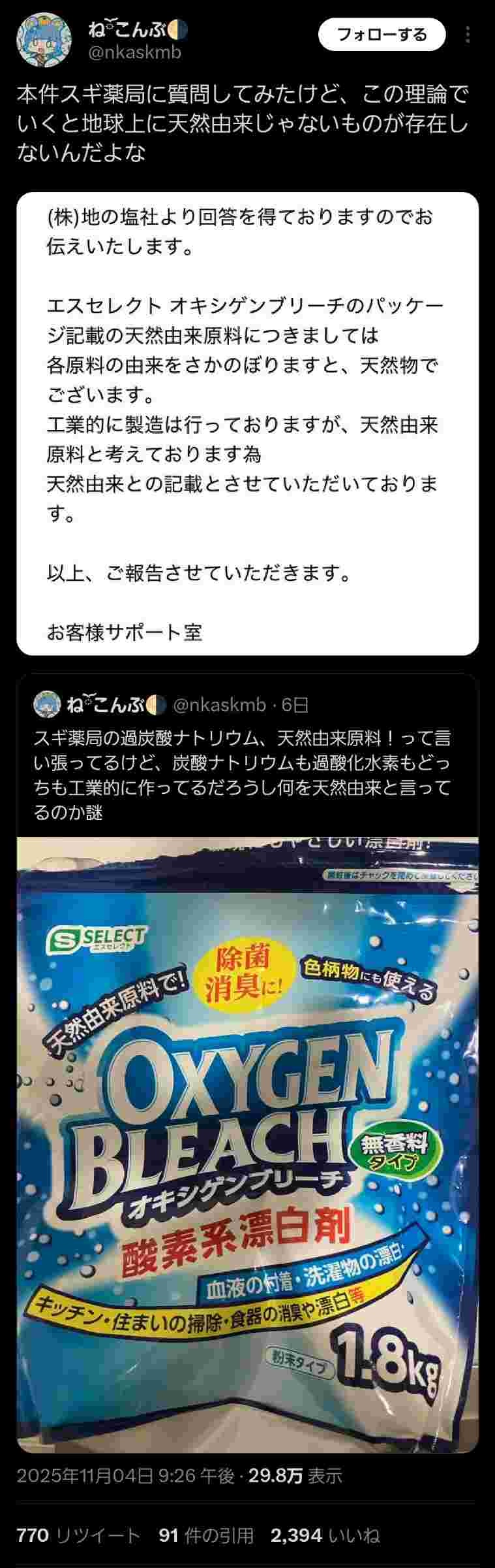 この表記の問題点は原材料が天然由来なんてごく当たり前の事なのに