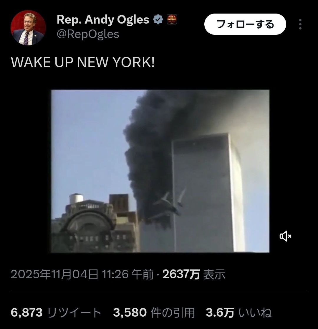 共和党議員、ニューヨーク市長選挙の結果に切れて911の動画を投稿→大炎上