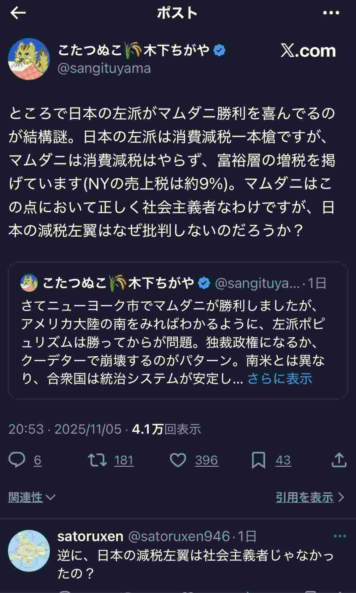 減税ポピュリズムを終わらせるとも言っていないしそもそもマムダニはめっちゃポピュリズム