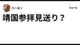 靖国参拝見送り?|防人竜斗夜に許可を貰ってパソコンを使用しています。 ショックがあり、眠れません。 高市さんが靖国神社を参拝しないというニュースがありました。 誤報でしょうか? それともDS勢力の介入でしょうか? 誤報だと信じたいです。 明日はホームでスポーツの仕事がありますが、 体調不良で休むかもしれません。 誰か詳しい事を知って居たら教えて...note.comこの後更新が途絶えた模様