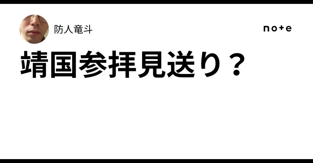 靖国参拝見送り?|防人竜斗夜に許可を貰ってパソコンを使用しています。 ショックがあり、眠れません。 高市さんが靖国神社を参拝しないというニュースがありました。 誤報でしょうか? それともDS勢力の介入でしょうか? 誤報だと信じたいです。 明日はホームでスポーツの仕事がありますが、 体調不良で休むかもしれません。 誰か詳しい事を知って居たら教えて...note.comこの後更新が途絶えた模様