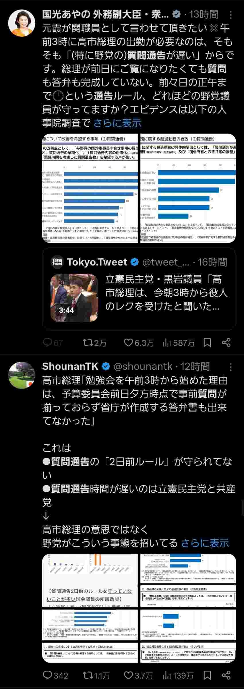 質問通告はあらゆる議会で役人の労働環境のために守るべきではあるが、それと高市政権にはなんの関係もないわけでね