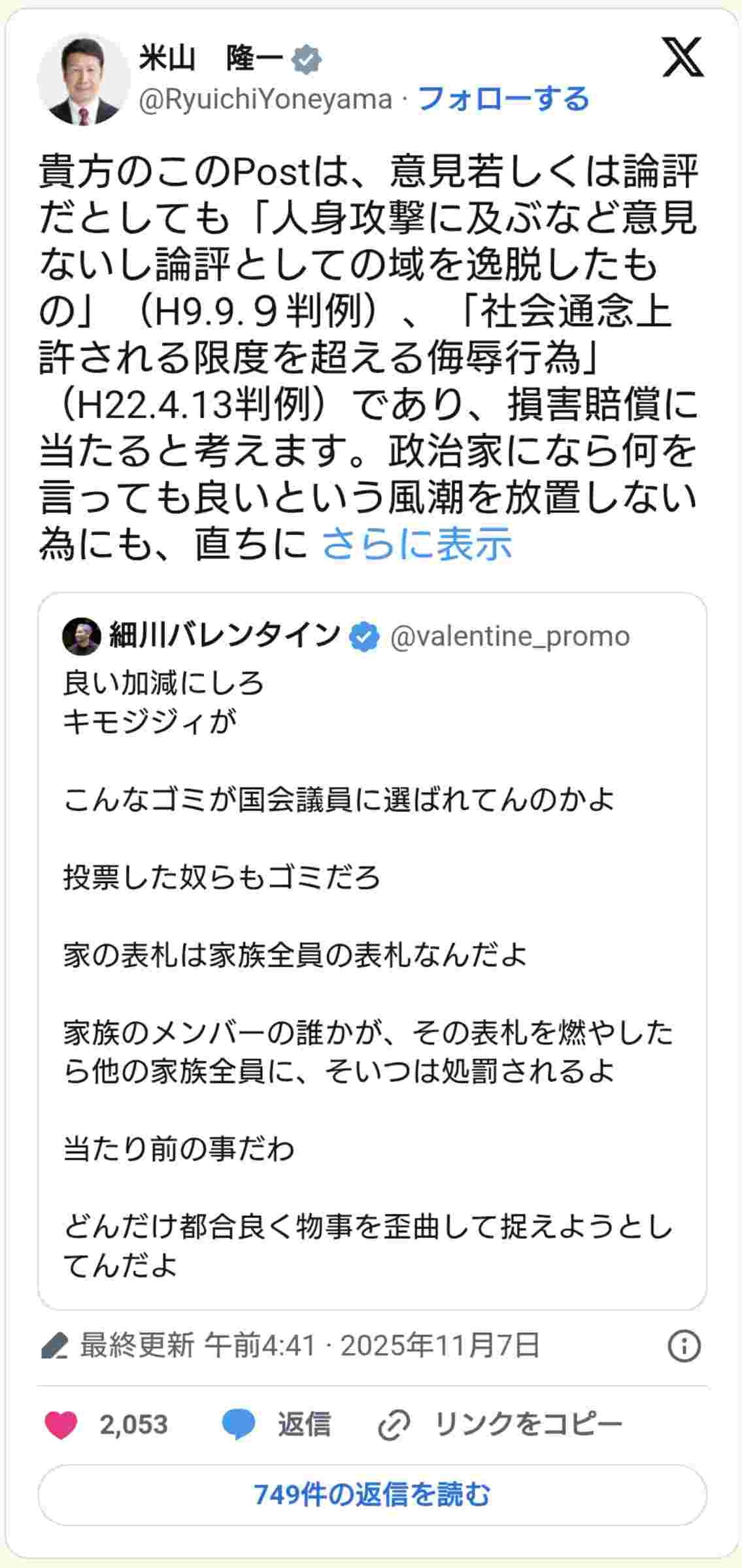 なんGでもレスバの最中に暴言に走ったやつは負けみたいな風潮あるからこれは米山の勝ちやな
