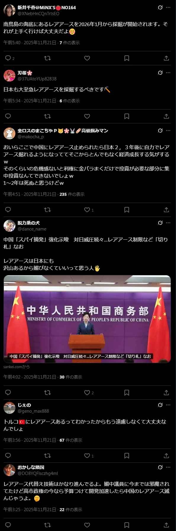 なお「じゃあ自分がレアアース精製という危険な仕事に就くわ!」と買って出るネトウヨは皆無の模様w