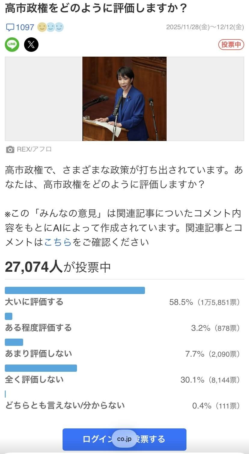 高市政権をどのように評価しますか? - みんなの意見 - Yahoo!ニュース高市政権で、さまざまな政策が打ち出されています。あなたは、高市政権をどのように評価しますか?※この「みんなの意見」は関連記事についたコメント内容をもとにAIによって作成されています。関連記事とコメンnews.yahoo.co.jp