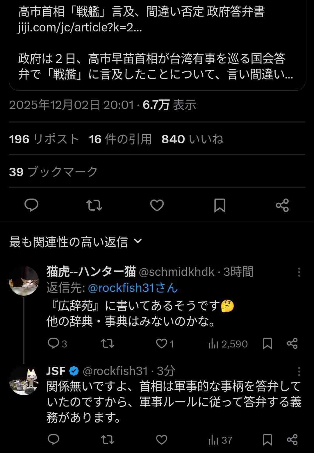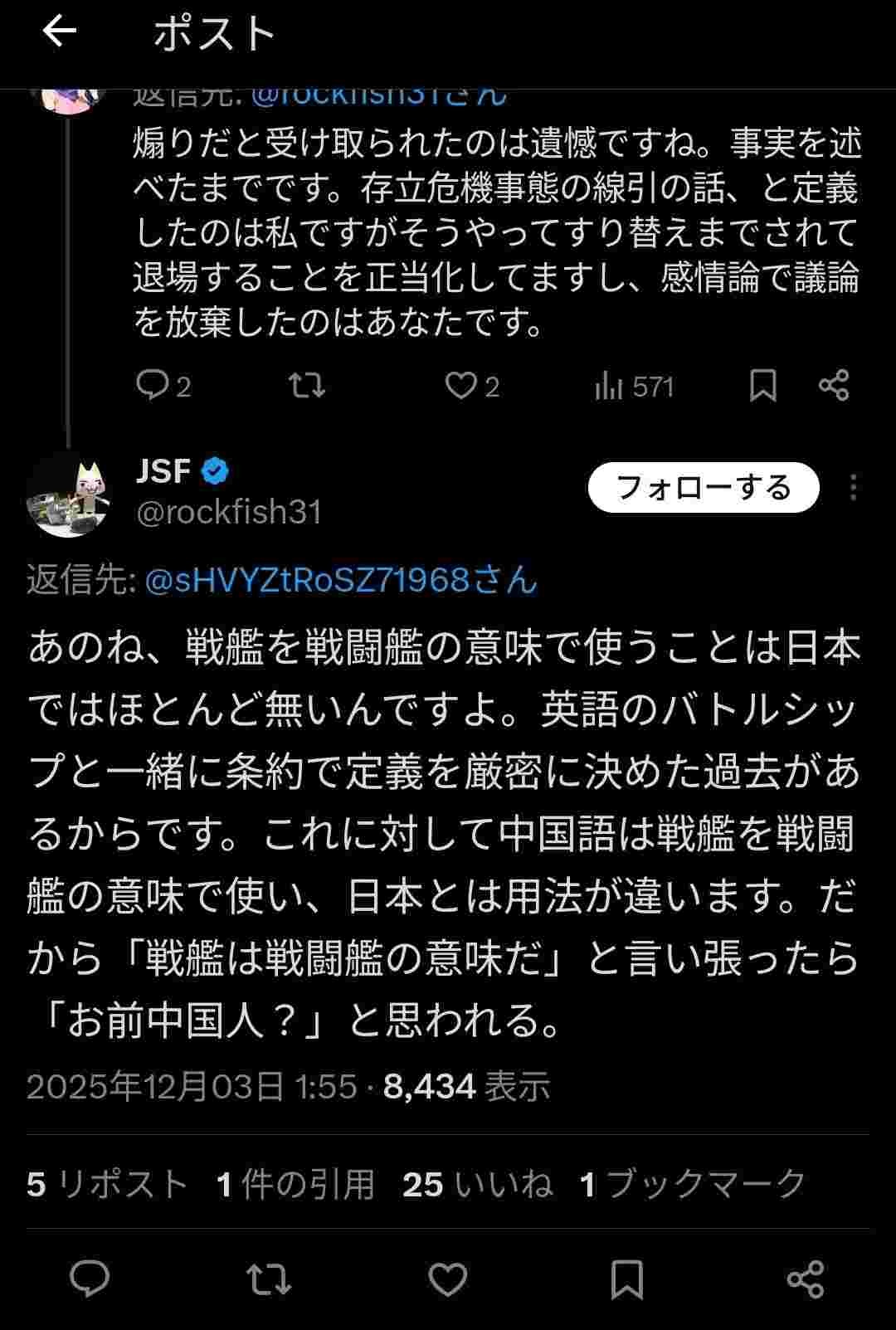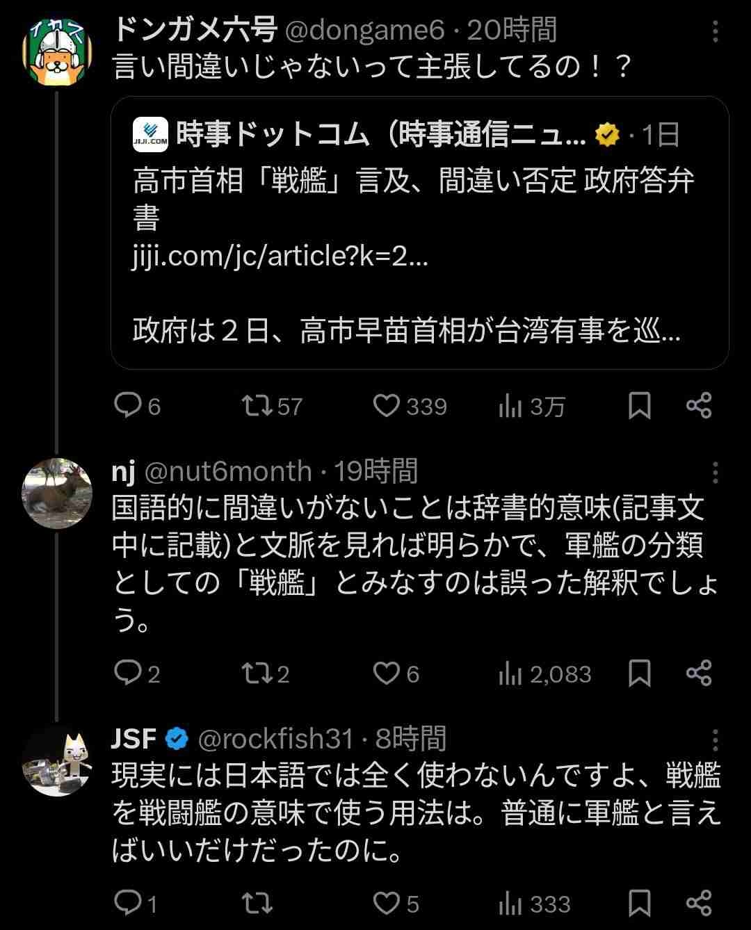 サナちゃん、専門的な答弁で戦艦を中国語の意味の方で使ってしまう時点で軍事に明るいかは正直微妙だから今後も軍オタ系ネトウヨは正気に戻っていきそう