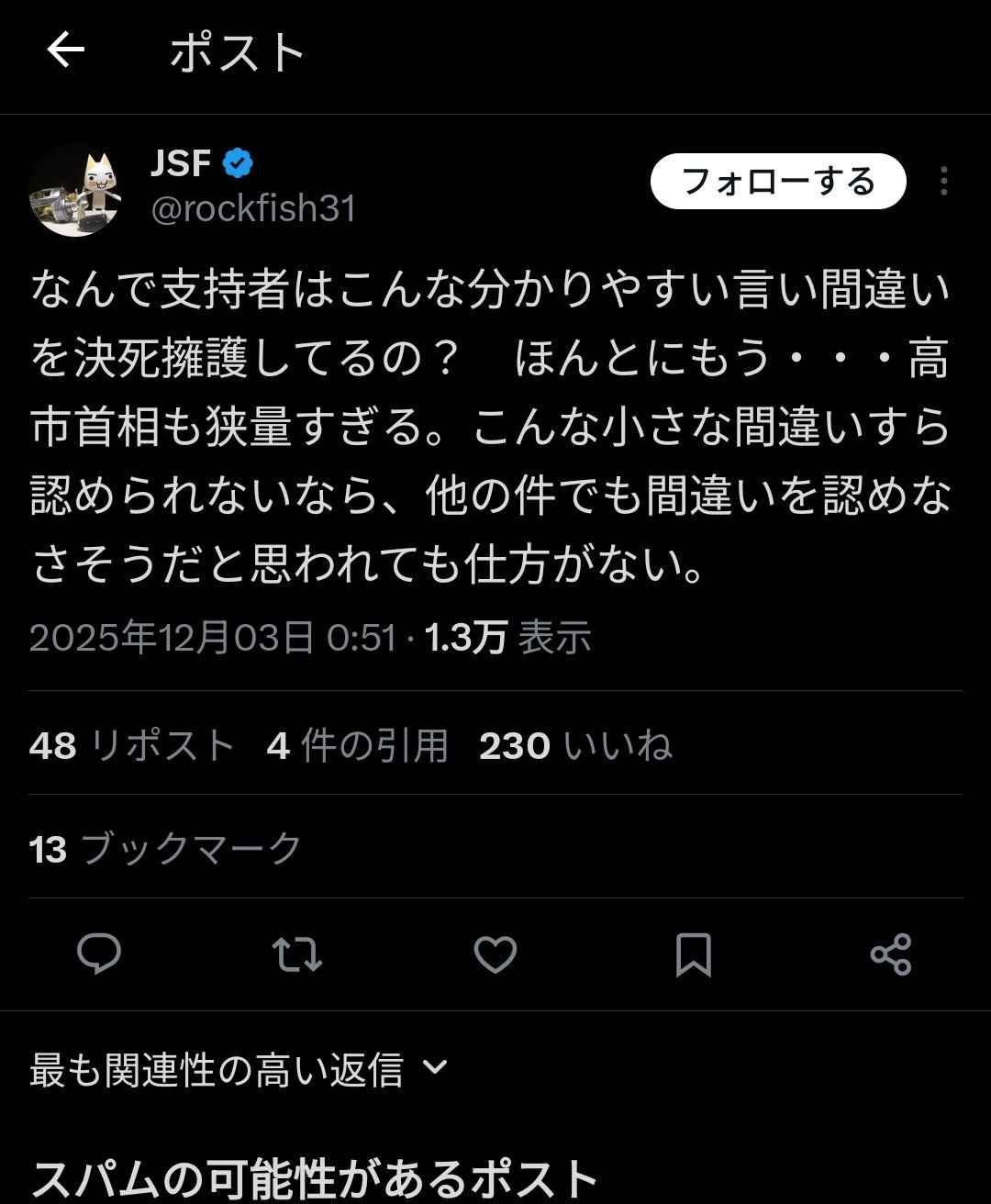JSF、高市早苗とその信者にゲンナリして急にまともな事を言い始める 反転か?