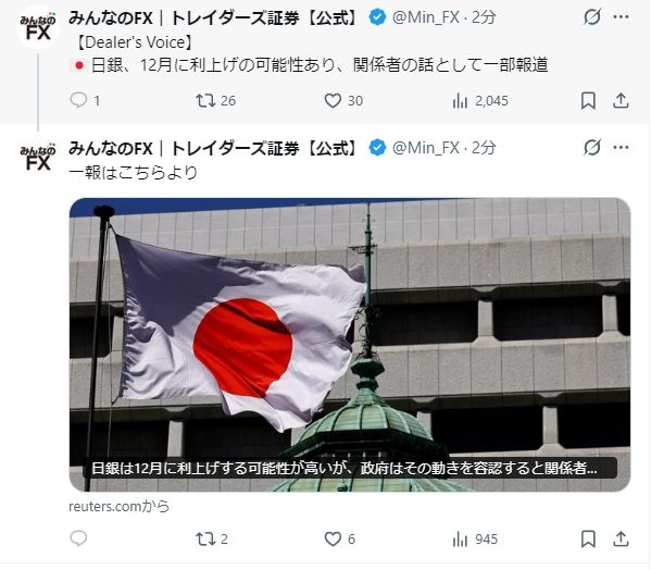 とはいえ12月のFRB利下げはほぼ100%織り込んでる。