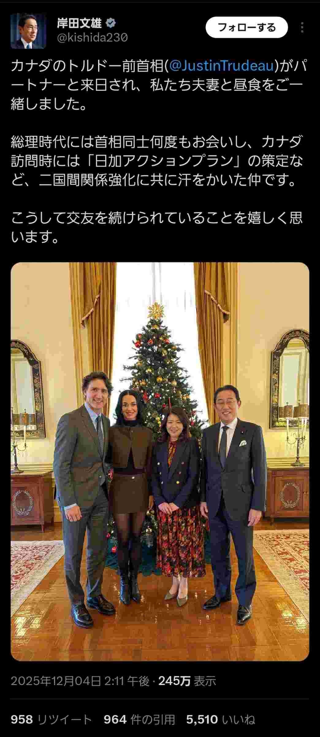 トルドーって前に日本に来た時、新婚旅行を兼ねてなかったっけ