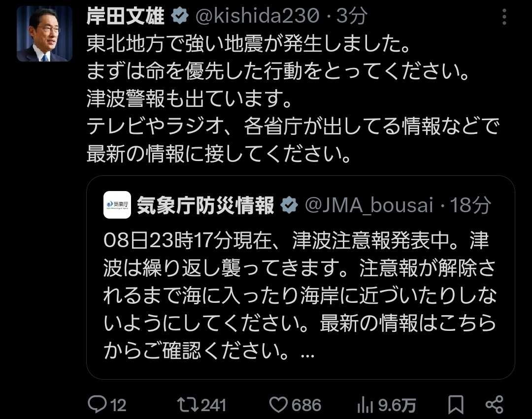 能登は新年会終わってから対応したくせに