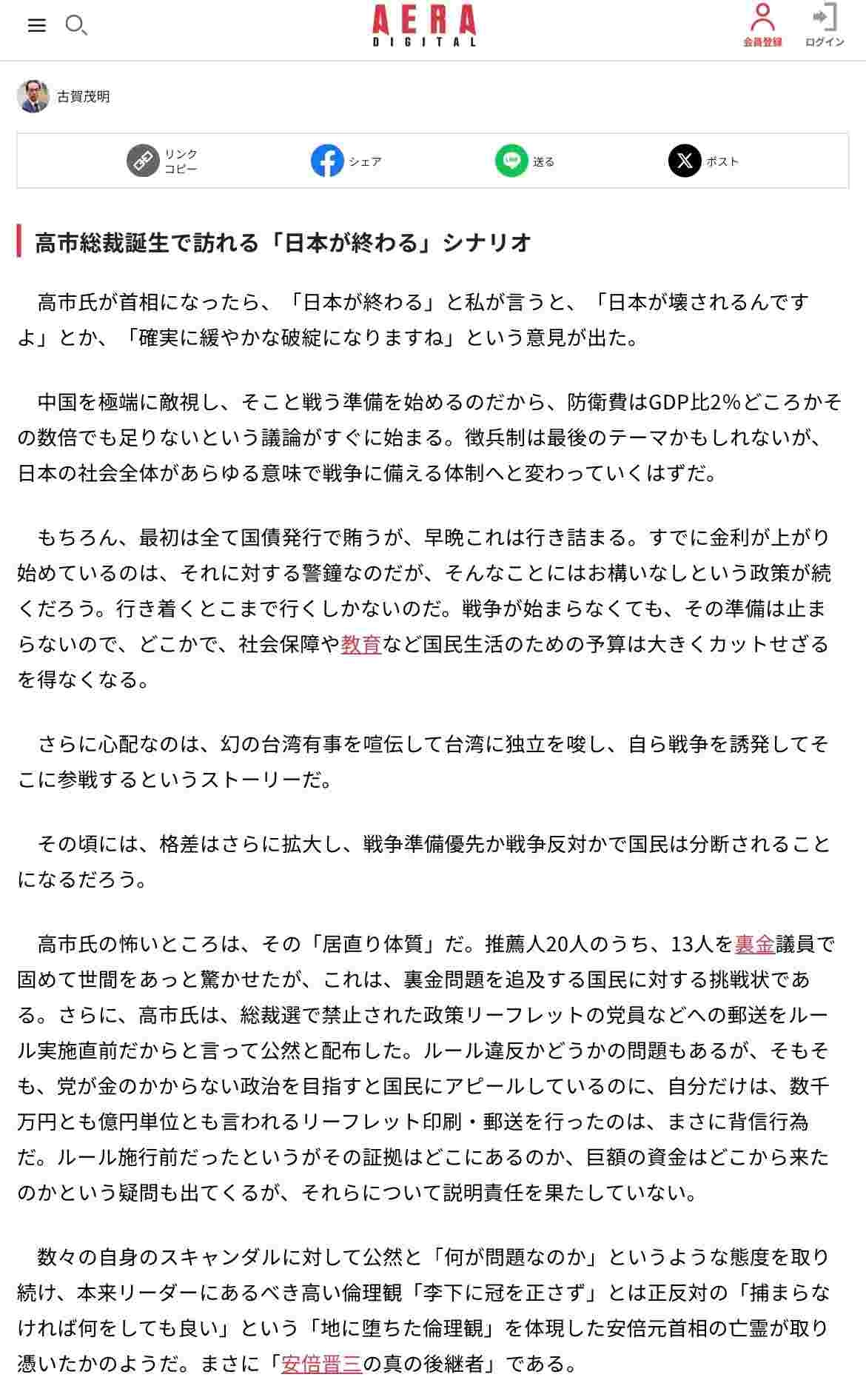 高市氏が首相になったら、「日本が終わる」と私が言うと、「日本が壊されるんですよ」とか、「確実に緩やかな破綻になりますね」という意見が出た。