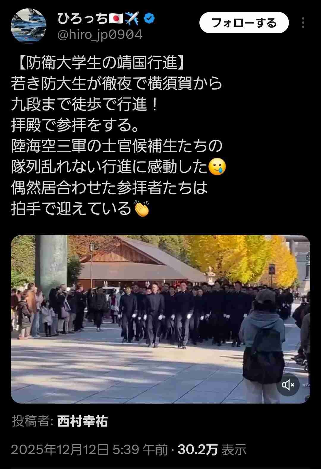 防衛大学生、横須賀から徹夜で靖国まで行進😤参拝者達は拍手で迎える【日帝しぐさ】