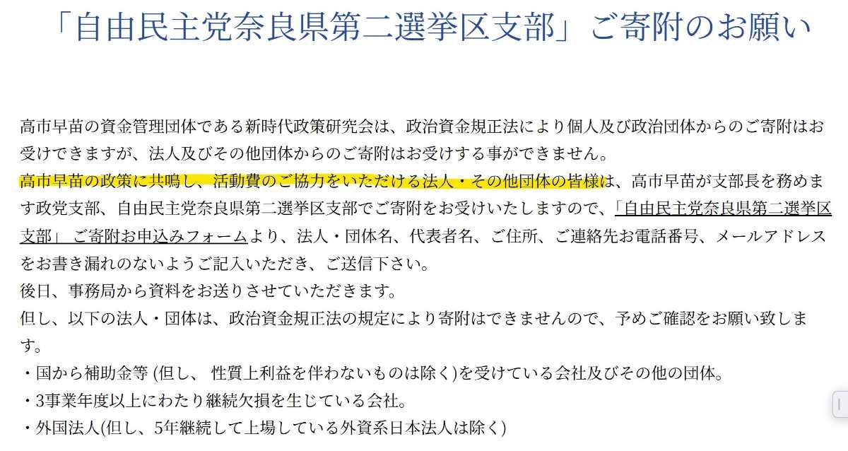 柴氏は「政党支部に対する企業・団体献金を規制する法改正の必要性が、明確になった」と強調した。 首相「私への献金ではない」 自身代表の支部上限超え寄付に(共同通信) - Yahoo!ニュース高市早苗首相は12日の参院予算委員会で、自身が代表を務める「自民党奈良県第2選挙区支部」が年間上限を超す寄付を企業から受けた問題を巡り「たまたま私が支部長だった。『高市早苗』に対する献金ではない」news.yahoo.co.jp後援会入会・寄附申込み
