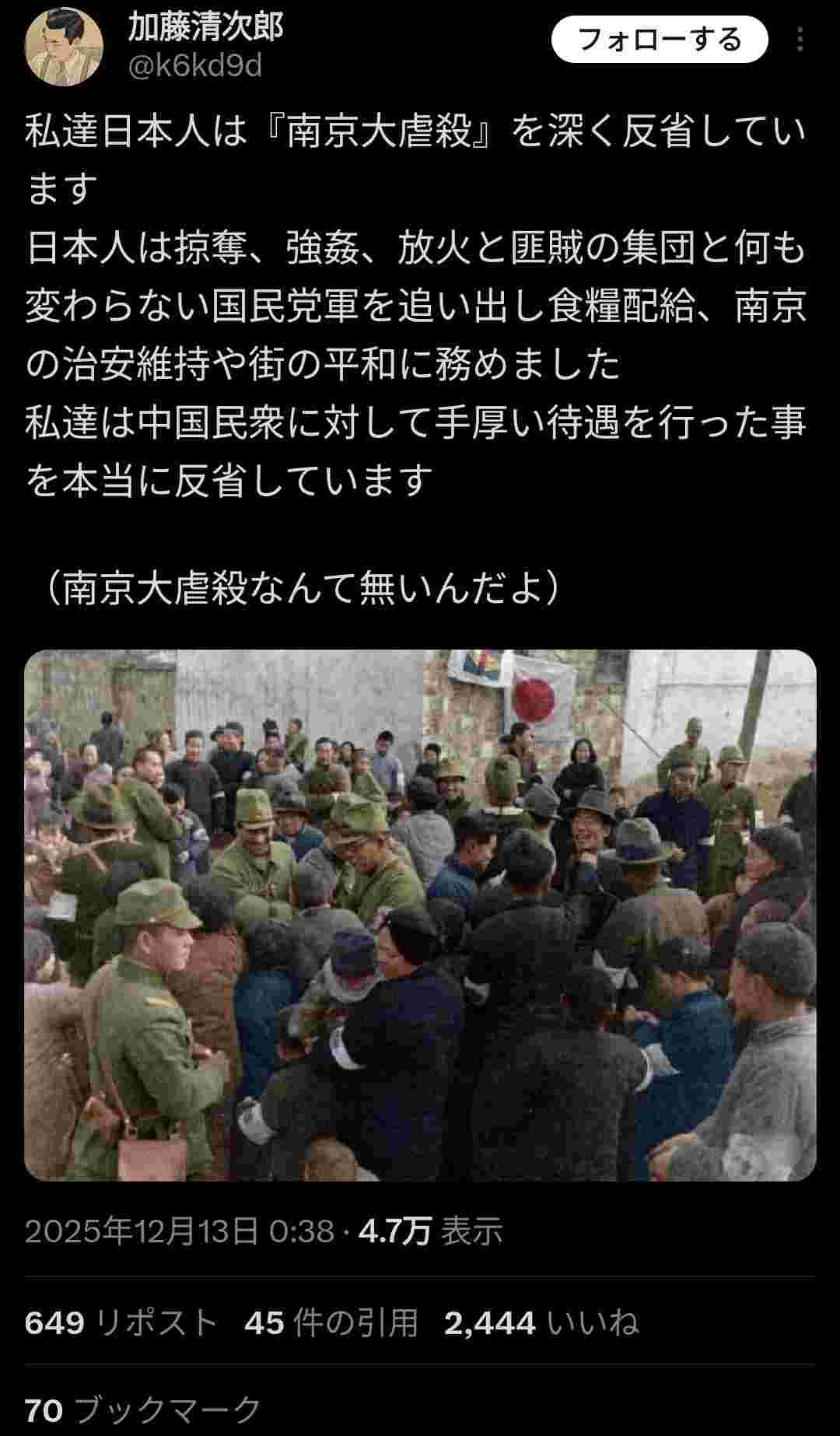 それじゃ南京大虐殺は認めるんだね。