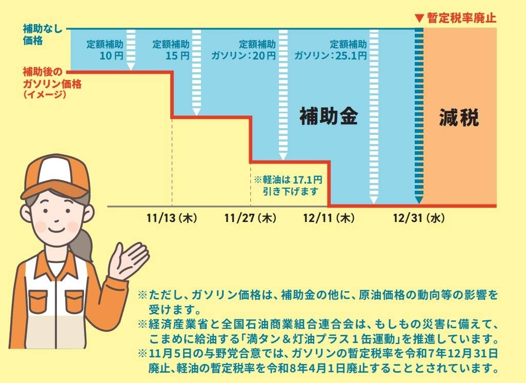 ガソリンについては、11日、暫定税率廃止と同等の水準まで補助金が拡充されています(軽油については、既に拡充が完了しています)。