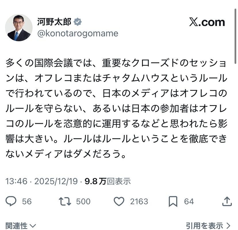 そもそもオフレコ自体が政治家とマスコミの癒着だろうが