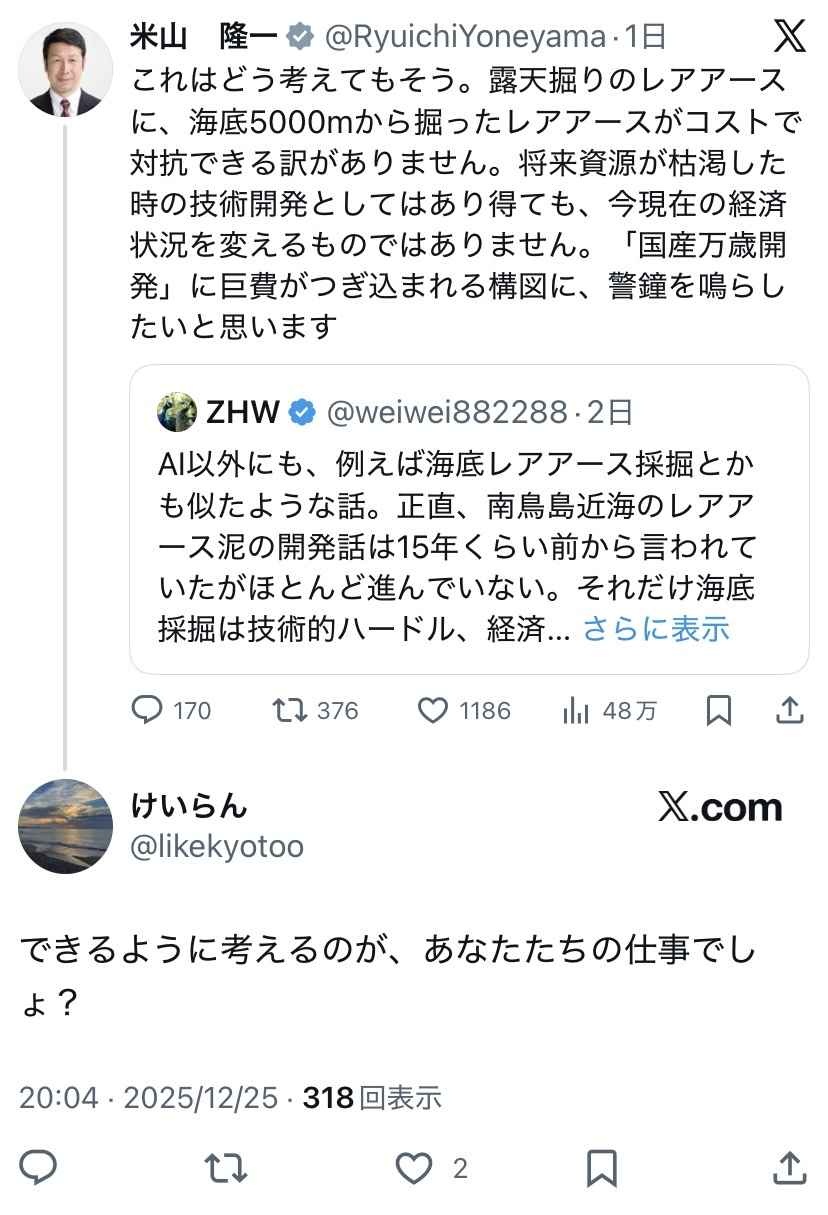 ましてや海のど真ん中で深海とかどうみてもコストだけで30倍はかかるそしてどうやって加工するんよ