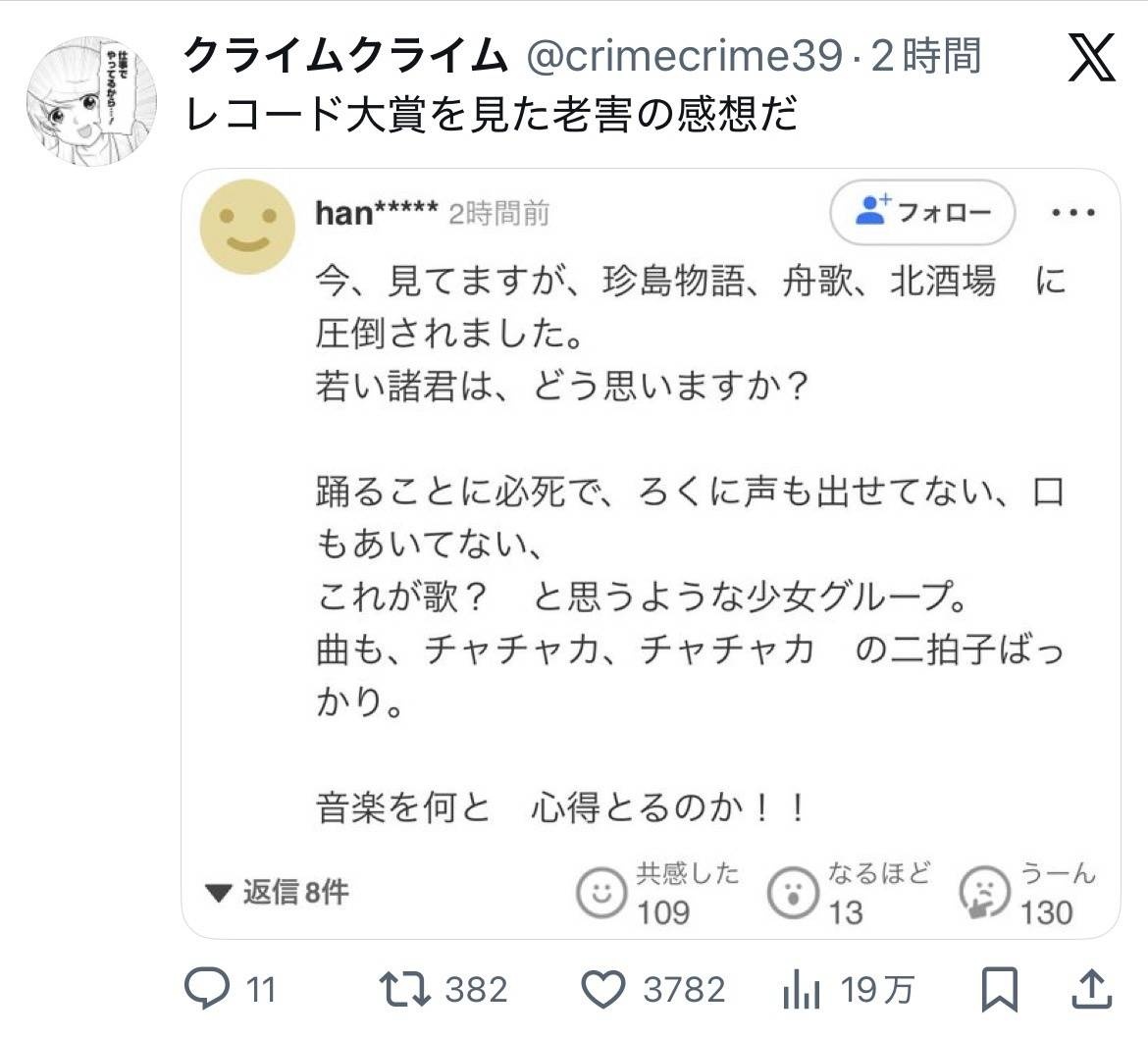 若い世代にも聞いて欲しいみたいな書き振りにしたら共感得たかも知れないのに