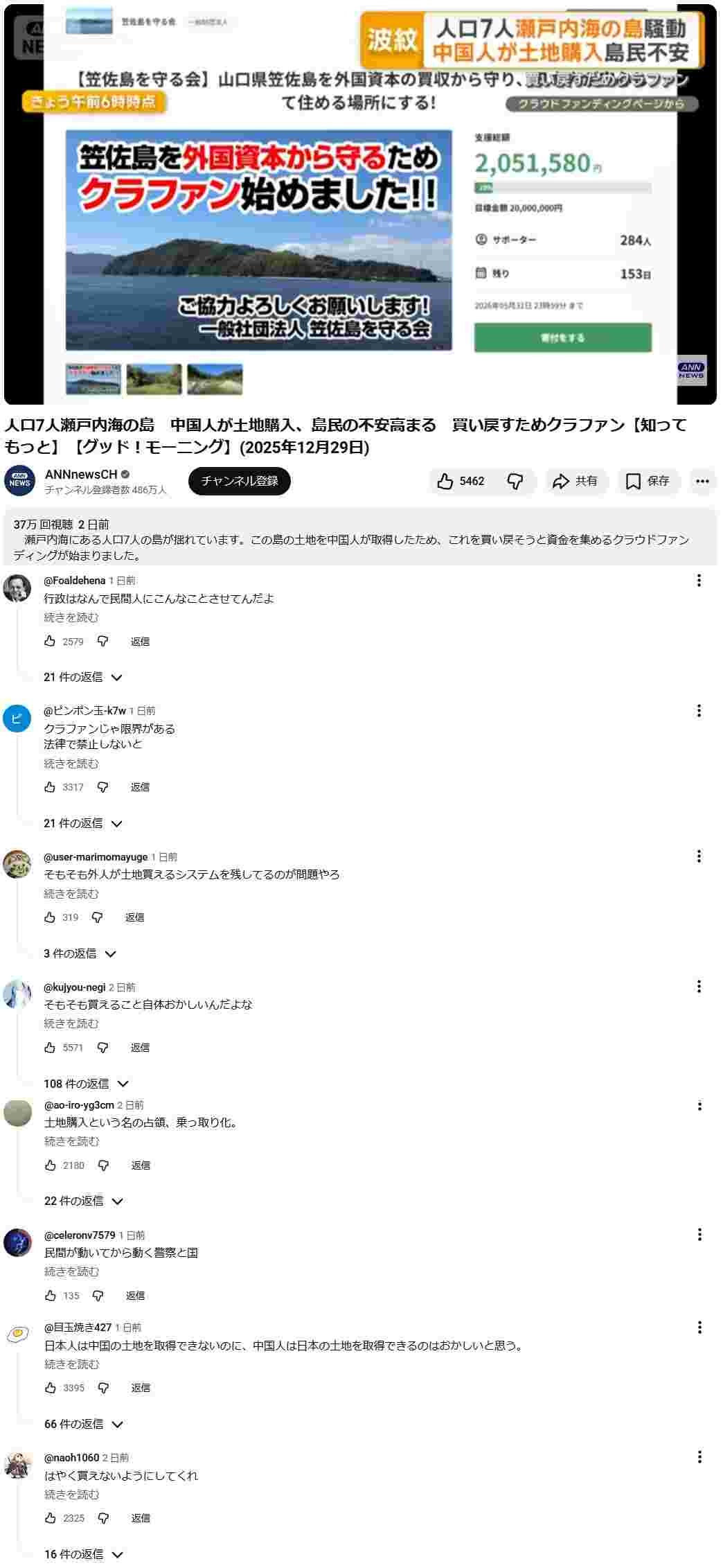 人口7人瀬戸内海の島 中国人が土地購入、島民の不安高まる 買い戻すためクラファン