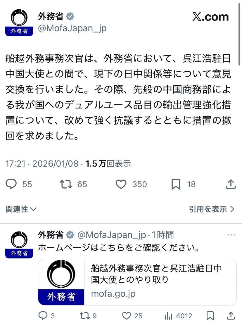 中国のほうが先に撤回要求してるのにガン無視した結果だろうに