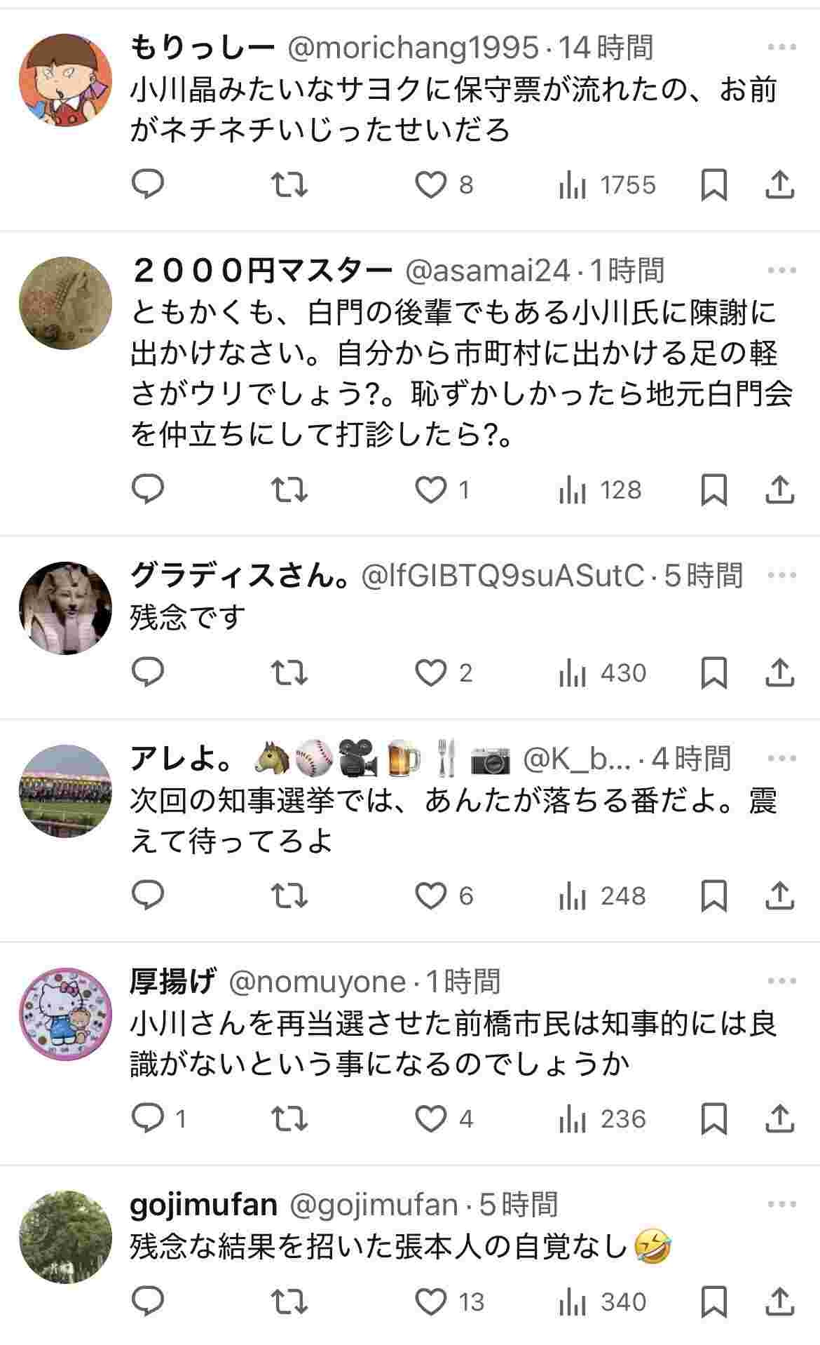 小川の気持ち悪さより丸山の自民土建政治に票を入れる方が意味ないんだよな